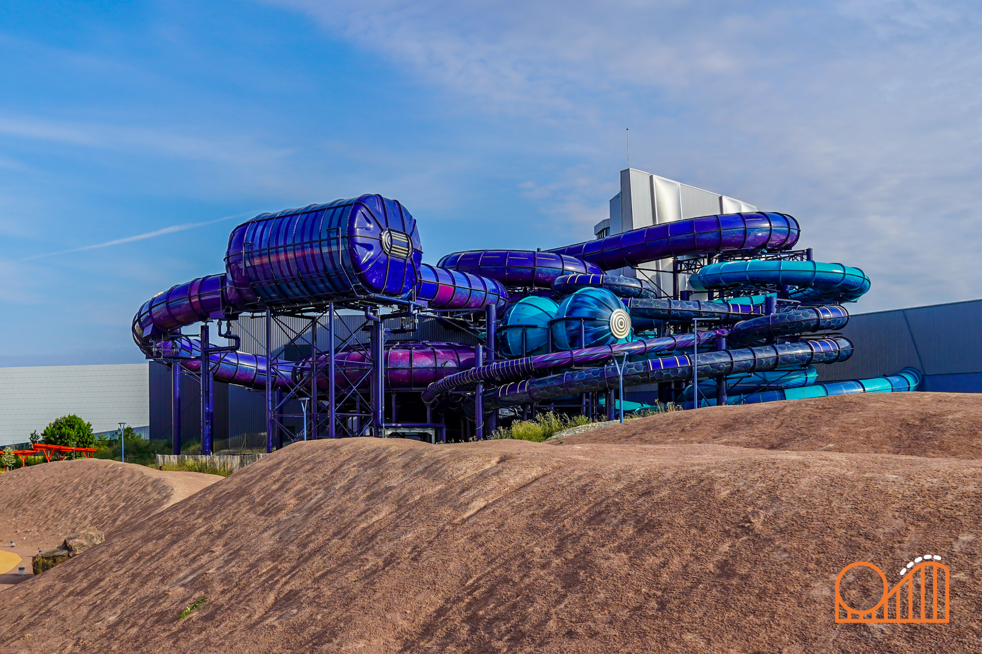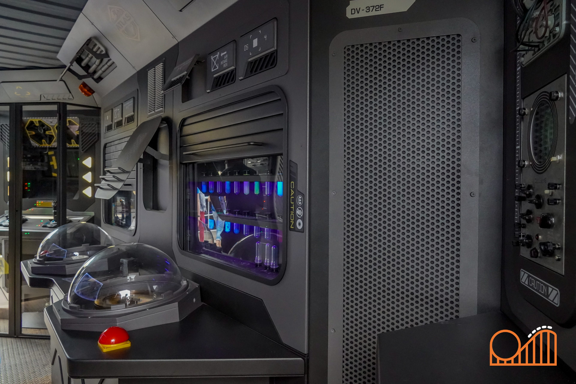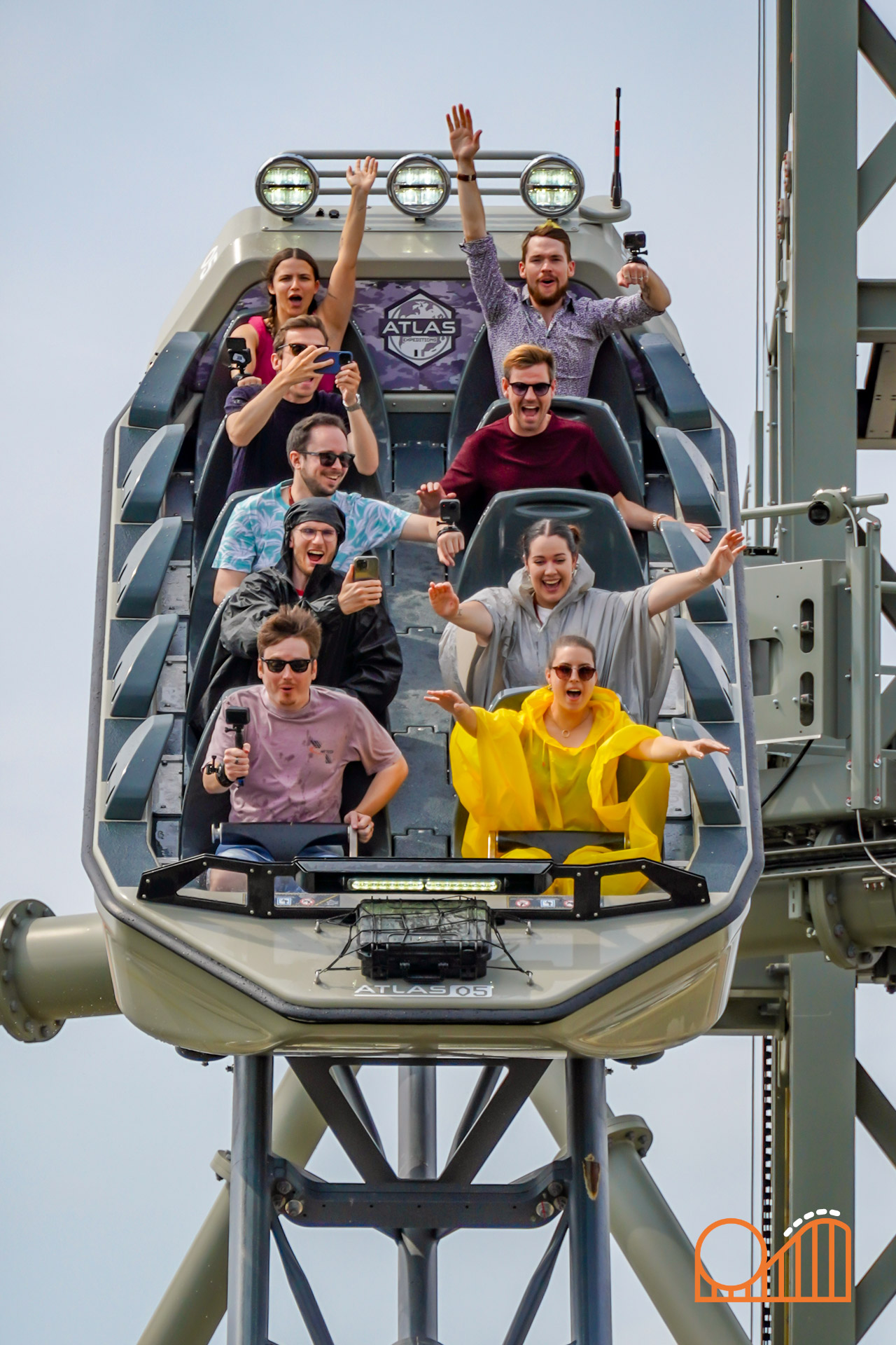 A vertical rotating lift leads to the climactic moment: a 16-meter plunge through a “space-time portal”—a visual metaphor replacing what was once planned as a volcano-themed finale. While this exposed tower and modest indoor lead-up might feel underwhelming compared to the original dark ride plans, the final drop still delivers a rather satisfying splashdown at 60 km/h.