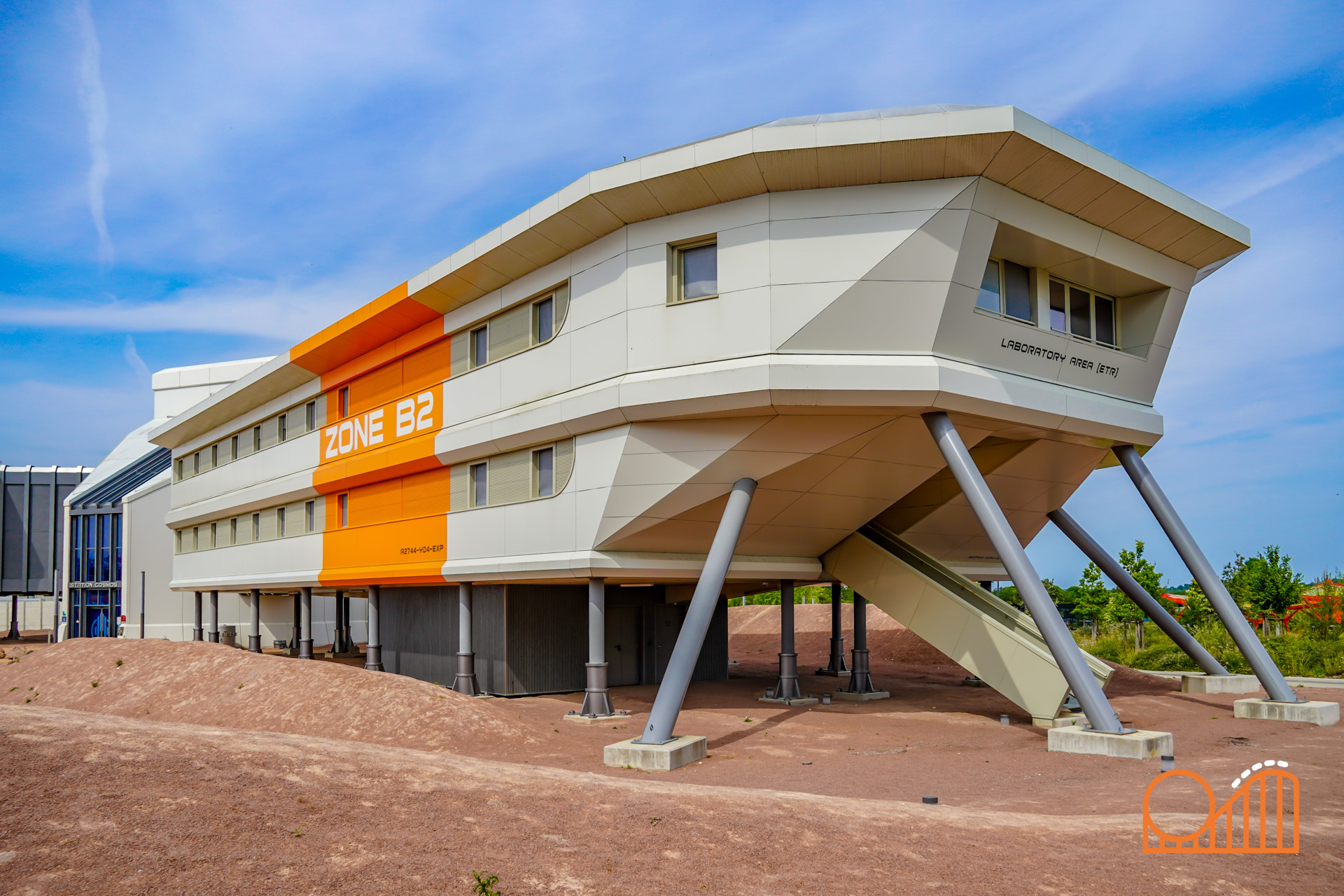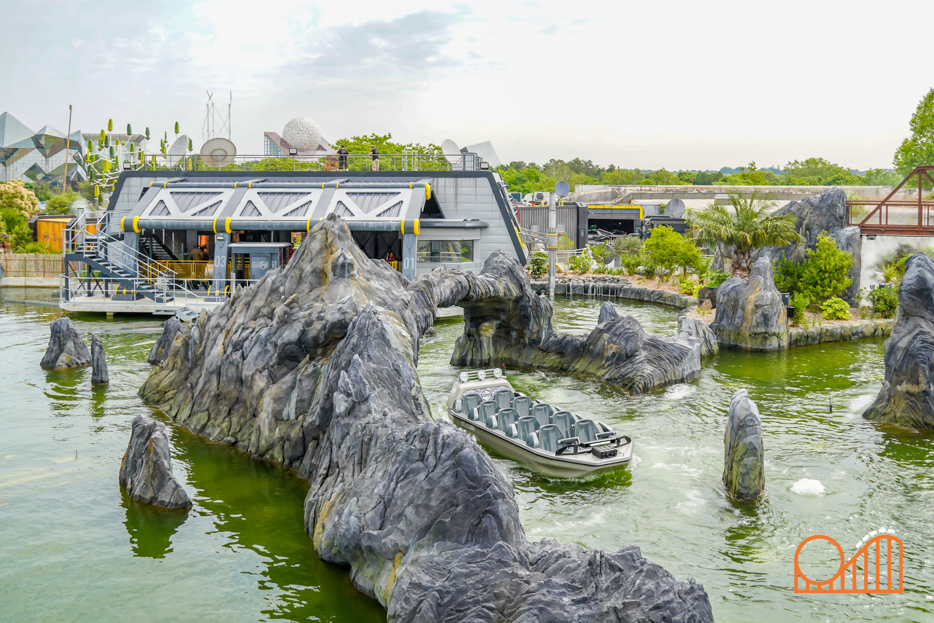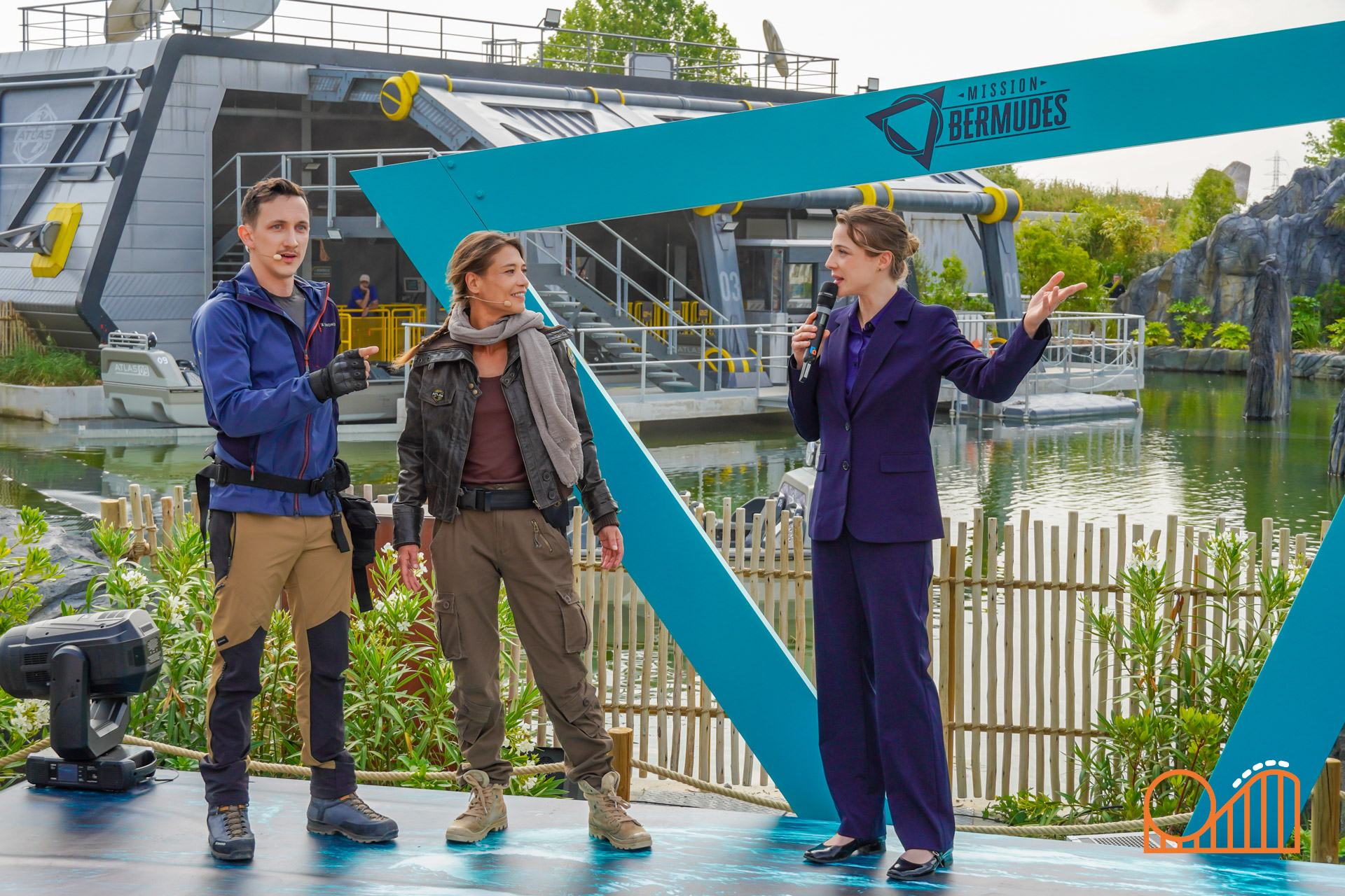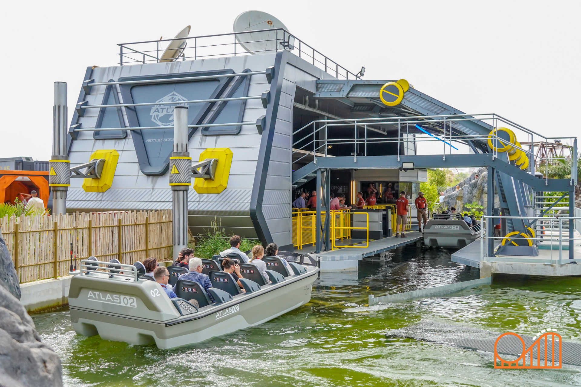 Set on a completely redeveloped 1.38-hectare site (formerly the Jardin des Énergies), Mission Bermudes is located near the park’s entrance in a lush, tropical landscape. The queue weaves guests through a research exploration base camp set in the mysterious Bermuda Triangle; over bridges, along misty jungle walkways and past expedition vehicles—supplied by French company 'buggy BOOXT'. The theming makes for a deeply immersive prelude to the adventure.