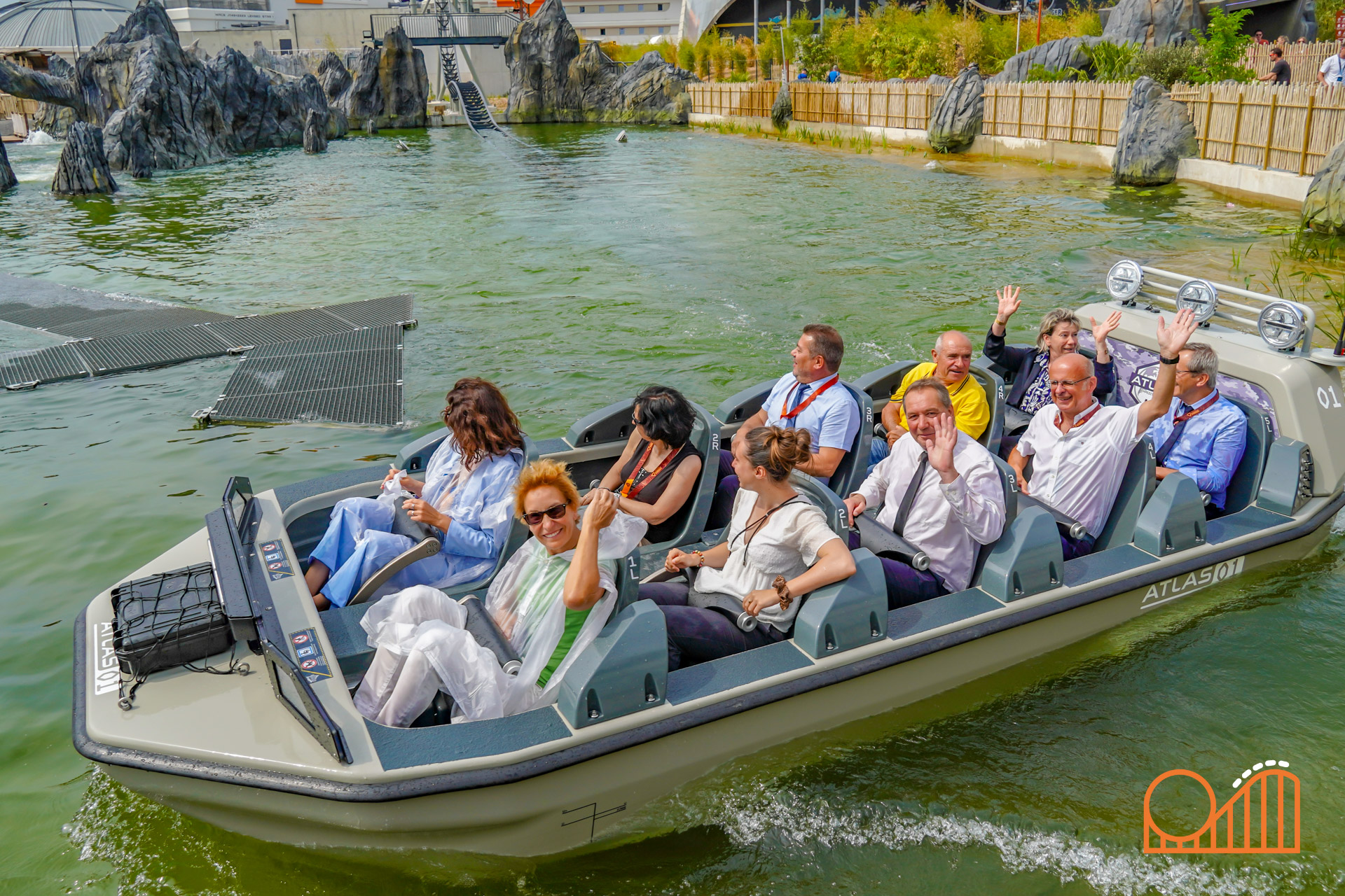 The event began with a ceremony attended by French Minister Delegate for Tourism Nathalie Delattre, Vienne department President Alain Pichon, and Futuroscope CEO Rodolphe Bouin. Representatives from Mack Rides, the German manufacturer behind the attraction’s innovative Rocking Boat ride system, were also present—underscoring the European collaboration behind this world-first attraction. A dramatic ribbon-cutting moment, complete with music, smoke effects, fireworks and pyrotechnics, set the tone for what was to come.