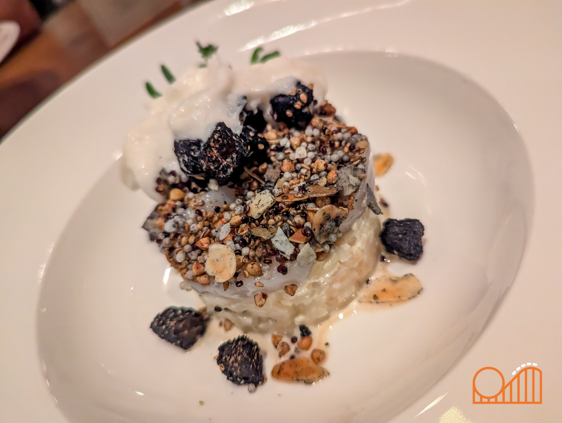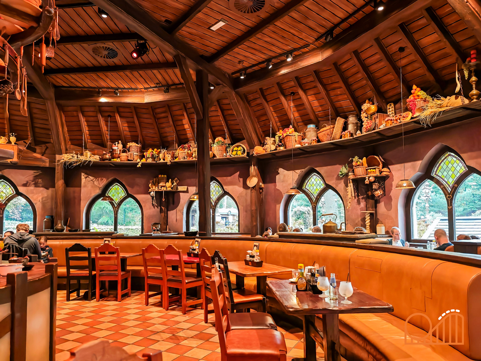 Our meal began with a Coquille Salad and French Onion Soup, followed by Crispy Cod and Guinea Fowl as mains. Dessert brought a delightful Sabayon crowned with cotton candy, alongside a coffee served with three magical bonbons. The meal, including a shared bottle of wine, came to €132 for two people, which felt like good value given the quality and atmosphere. Brasserie 7 is a stunningly designed restaurant, bright and elegant with a spacious conservatory and terrace that overlook the heart of Efteling. It actually feels more impressive than the smaller premium restaurant, Mystique, also located within the hotel.