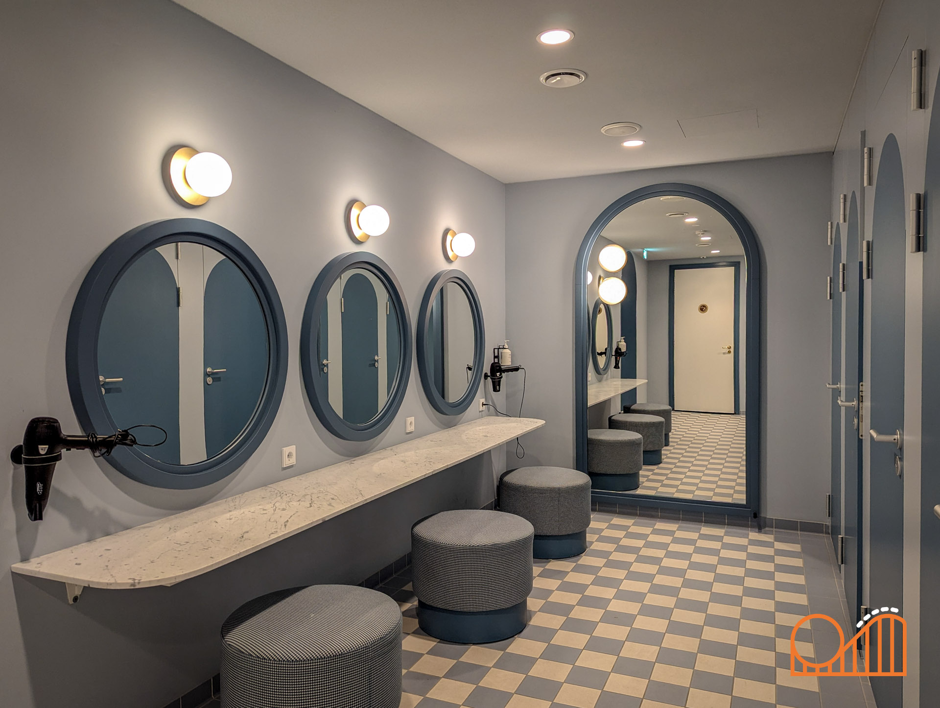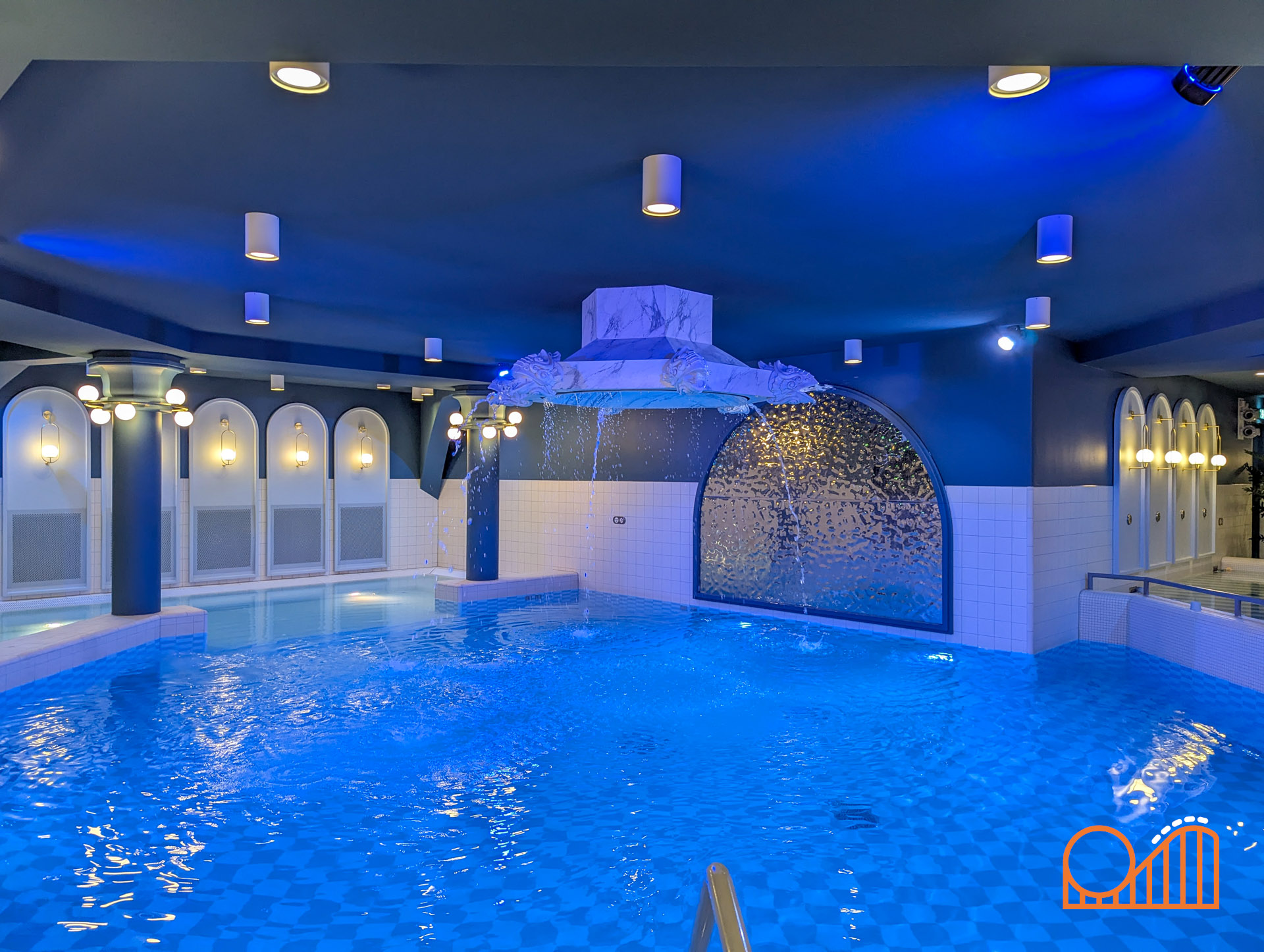 The Efteling Grand Hotel offers a variety of amenities accessible to guests. The Pool & Spa area was a particular highlight for us — spotlessly clean and well maintained, we had it entirely to ourselves during our visit. The pool features an elegant whirlpool and a gentle water fountain that activates periodically, accompanied by subtle changes in lighting — a charming touch.