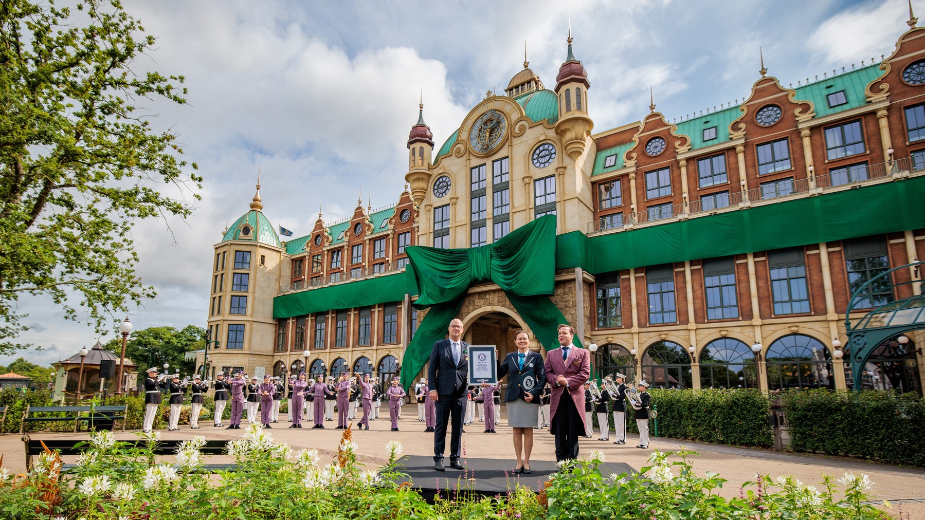 To mark the opening of the new Efteling Grand Hotel, Efteling’s first hotel inside the park walls, the Dutch theme park has placed the world’s largest ribbon bow on the façade of its new luxury hotel.