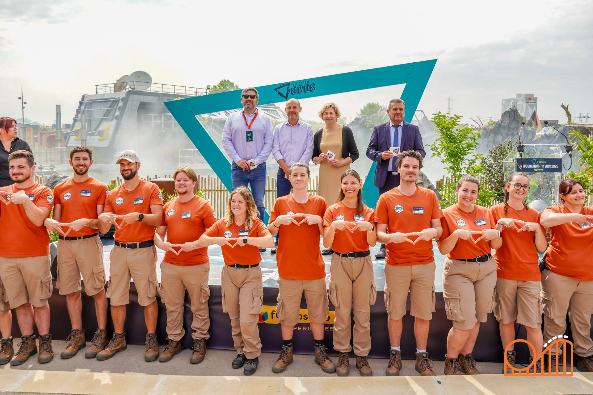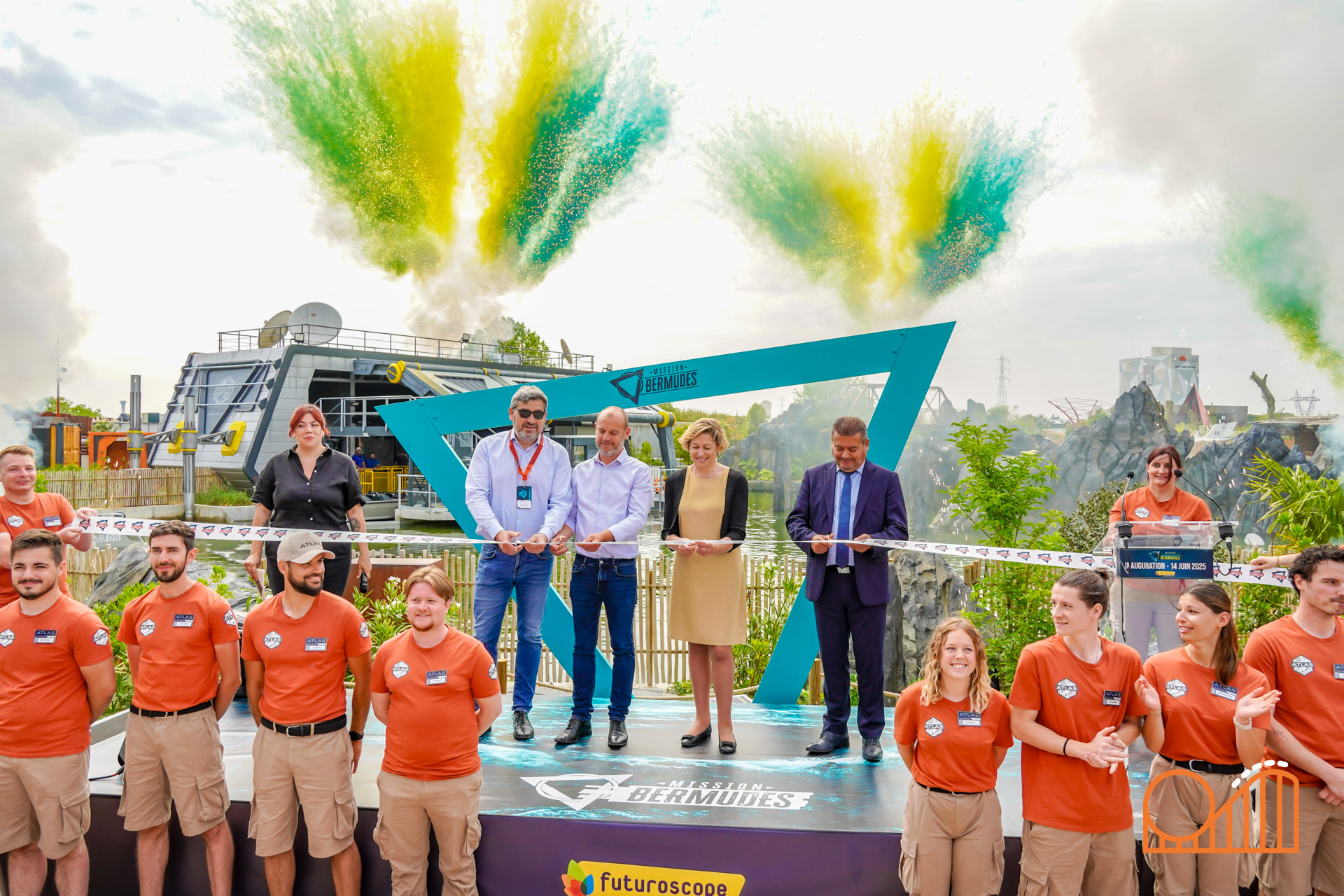 The event began with a ceremony attended by French Minister Delegate for Tourism Nathalie Delattre, Vienne department President Alain Pichon, and Futuroscope CEO Rodolphe Bouin. Representatives from Mack Rides, the German manufacturer behind the attraction’s innovative Rocking Boat ride system, were also present—underscoring the European collaboration behind this world-first attraction. A dramatic ribbon-cutting moment, complete with music, smoke effects, fireworks and pyrotechnics, set the tone for what was to come.