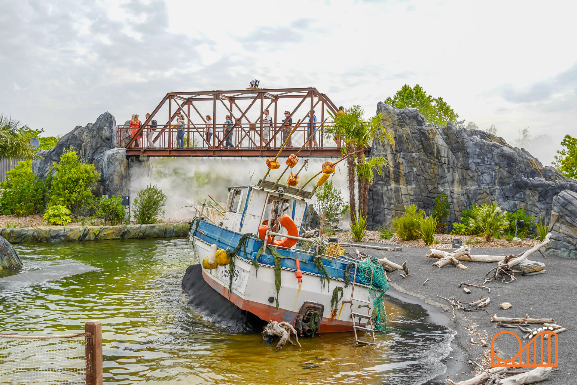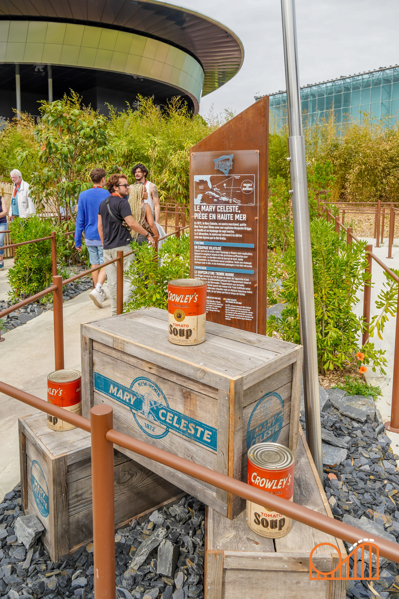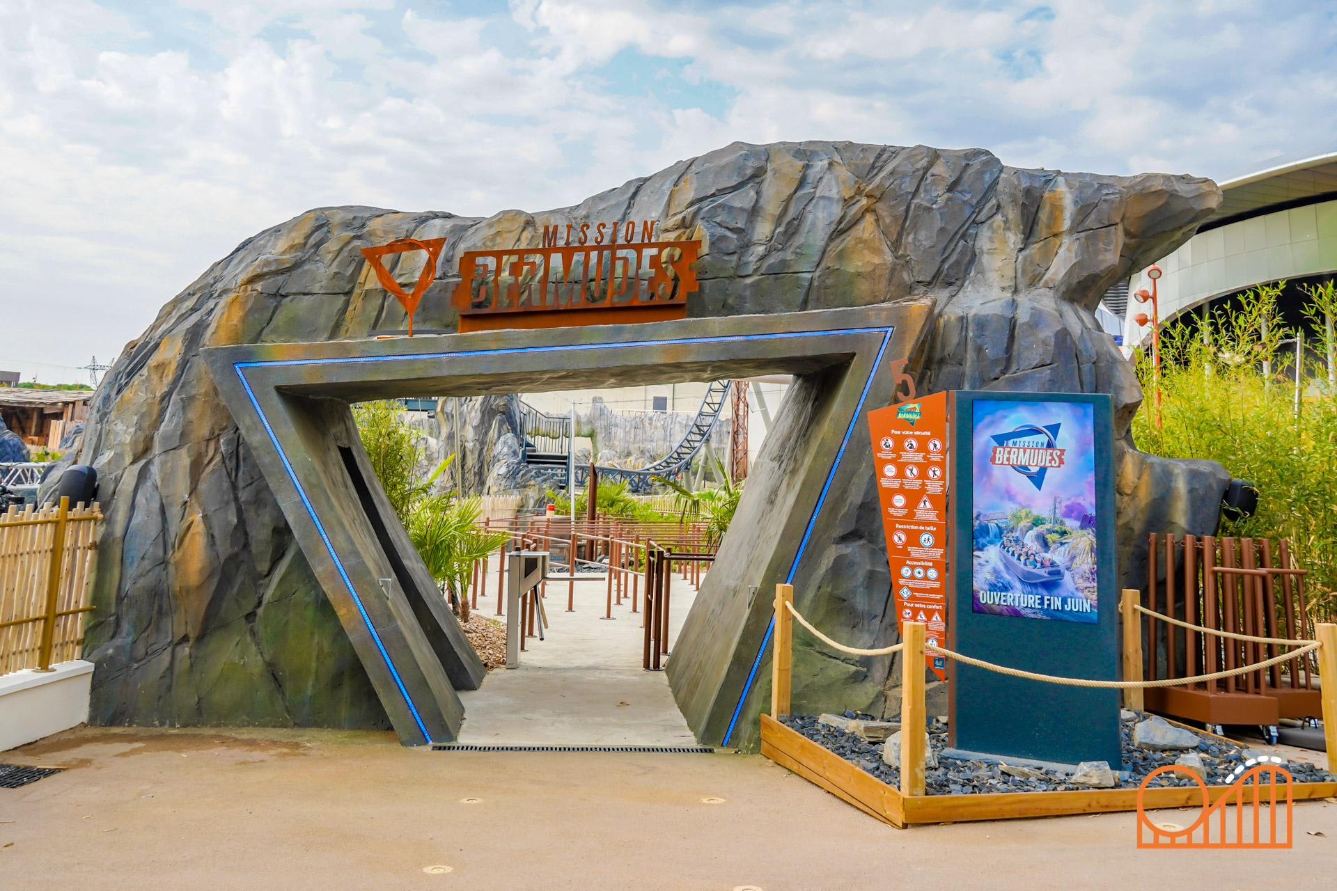 Set on a completely redeveloped 1.38-hectare site (formerly the Jardin des Énergies), Mission Bermudes is located near the park’s entrance in a lush, tropical landscape. The queue weaves guests through a research exploration base camp set in the mysterious Bermuda Triangle; over bridges, along misty jungle walkways and past expedition vehicles—supplied by French company 'buggy BOOXT'. The theming makes for a deeply immersive prelude to the adventure.