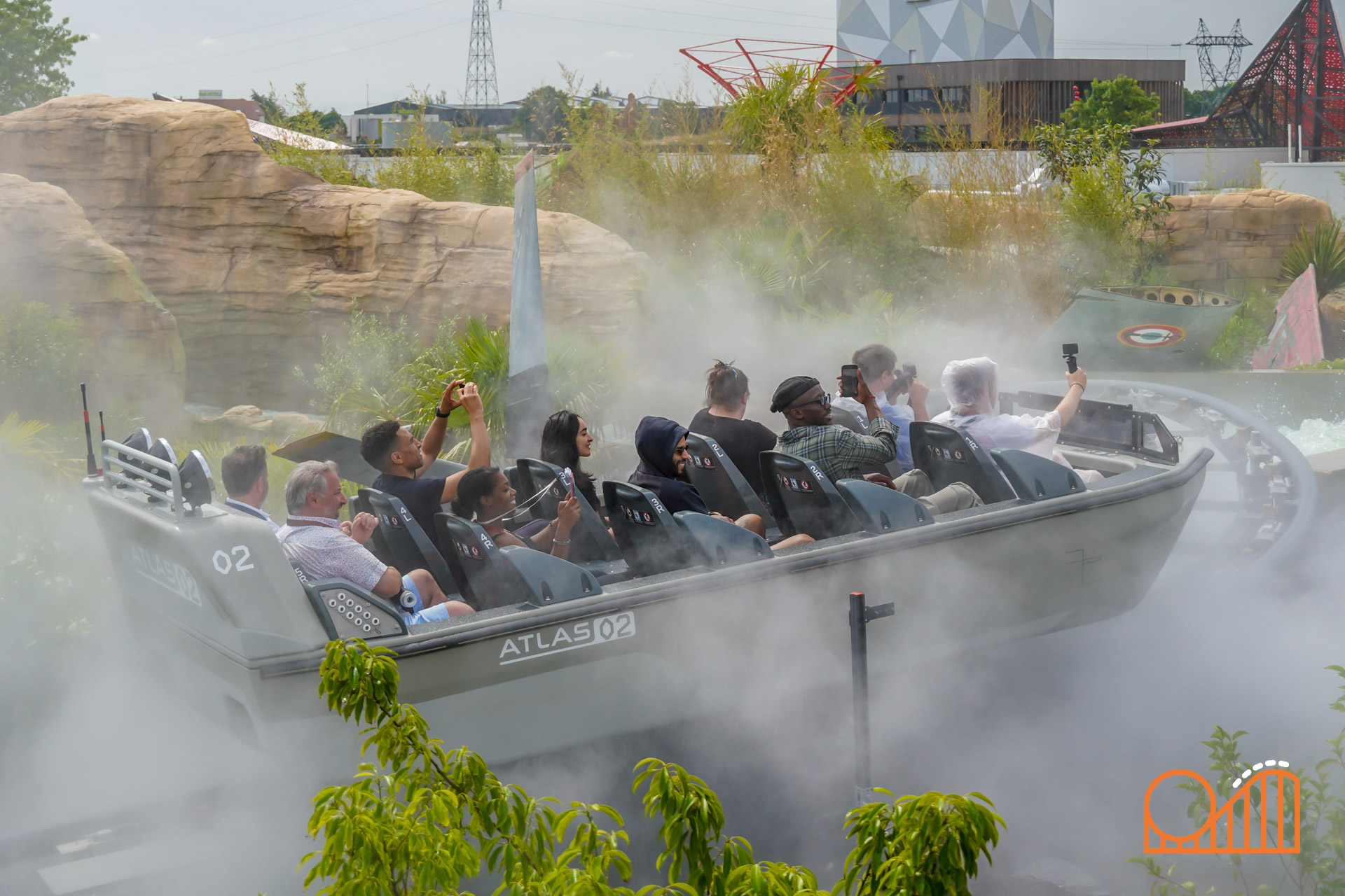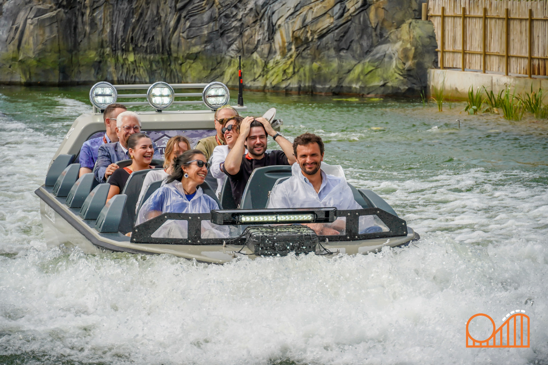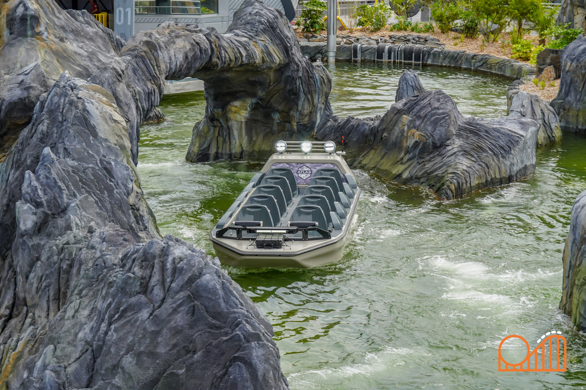 The ride itself lasts just over 4 minutes and blends multiple genres into a single, high-concept thrill: part water ride, part dark ride, and part coaster. Guests board 10-person boats and are immediately thrust into a dynamic adventure. Unlike all traditional water coasters, the Rocking Boat system enables multidirectional propulsion, forward and backward parts, and dramatic rocking that simulates unpredictable movement.