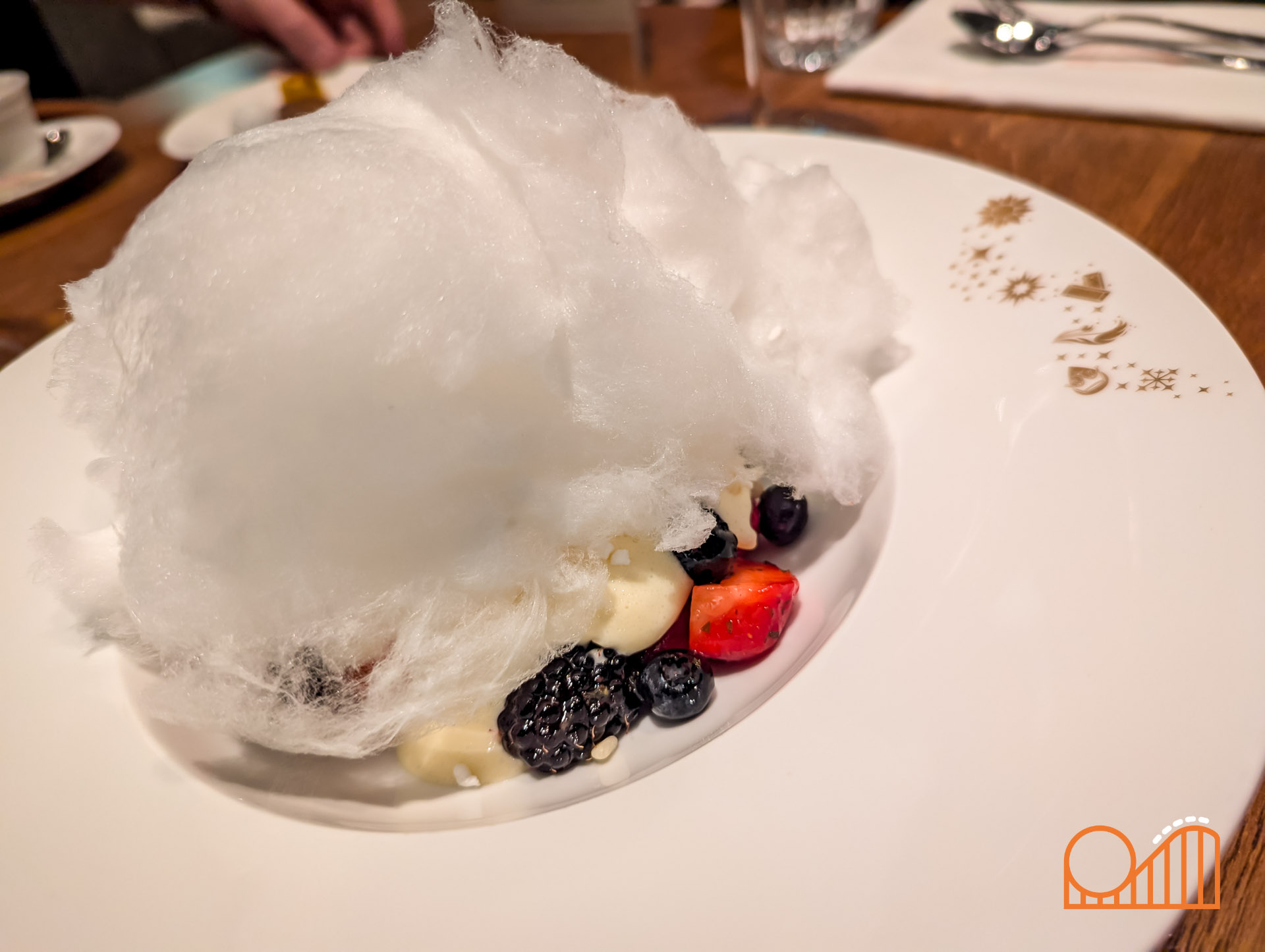 Our meal began with a Coquille Salad and French Onion Soup, followed by Crispy Cod and Guinea Fowl as mains. Dessert brought a delightful Sabayon crowned with cotton candy, alongside a coffee served with three magical bonbons. The meal, including a shared bottle of wine, came to €132 for two people, which felt like good value given the quality and atmosphere. Brasserie 7 is a stunningly designed restaurant, bright and elegant with a spacious conservatory and terrace that overlook the heart of Efteling. It actually feels more impressive than the smaller premium restaurant, Mystique, also located within the hotel.