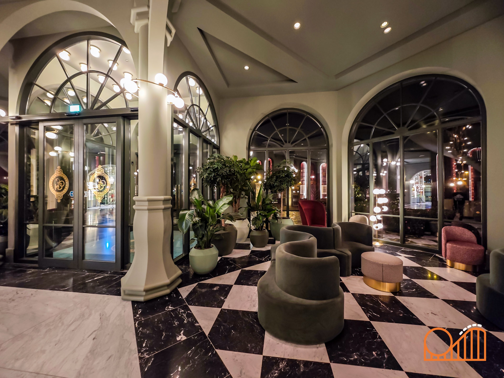 The exterior of the Efteling Grand Hotel is immediately impressive, its grand façade glowing beautifully when illuminated at night. Inside, the lobby continues this theme of understated luxury: spacious, elegant, and immaculately clean. The option for valet parking adds to the sense of arrival at a true grand hotel.