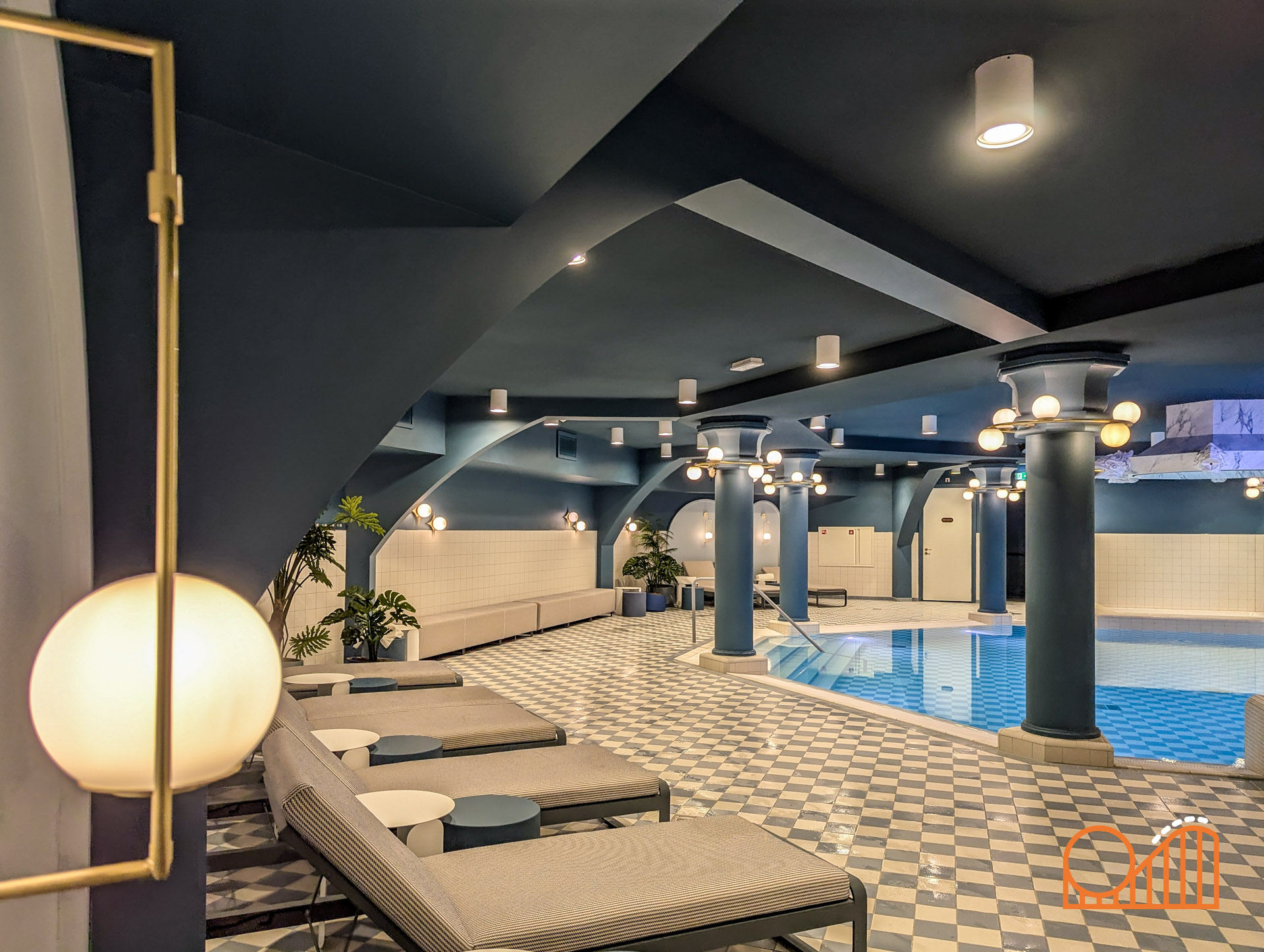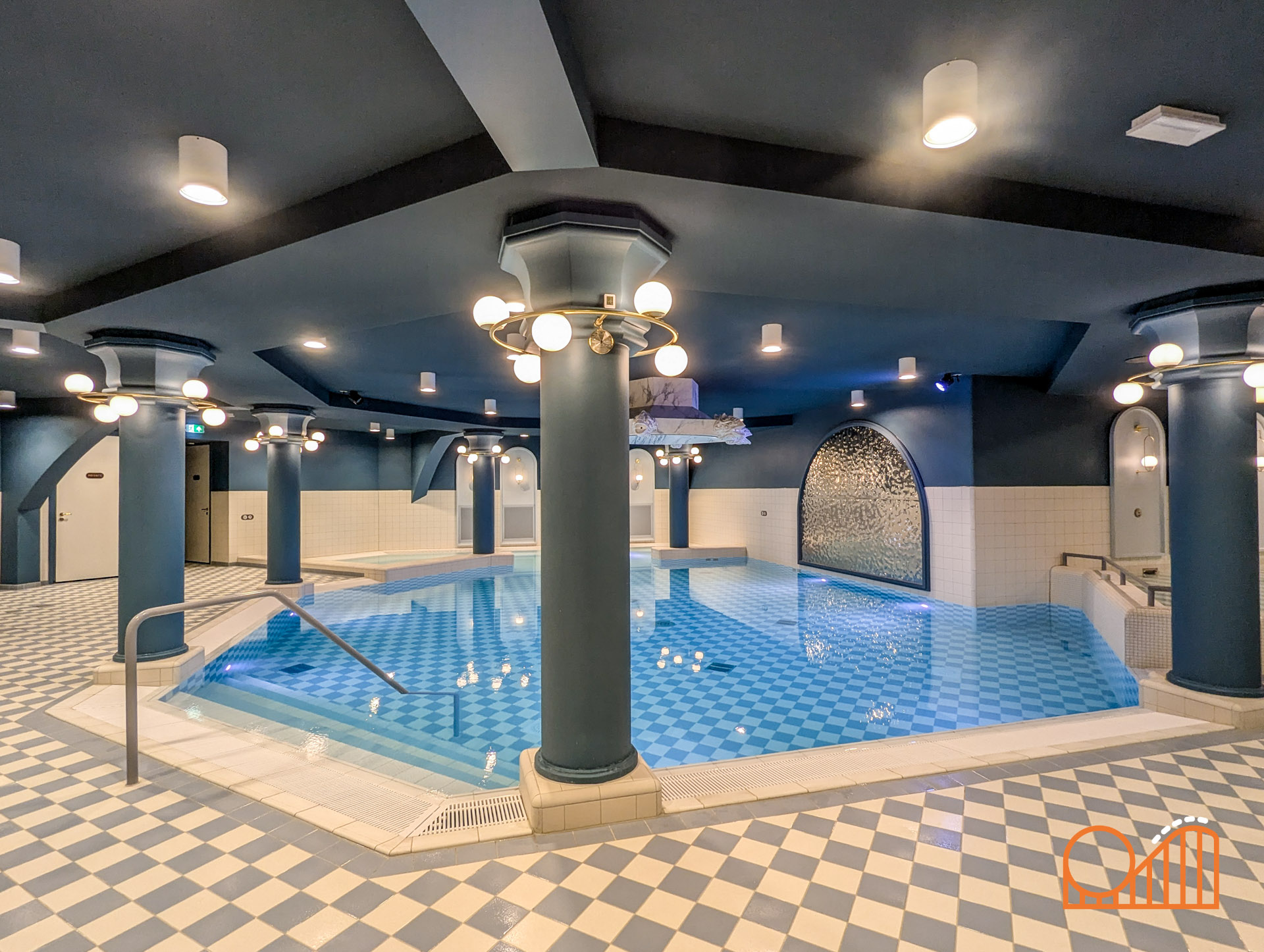 The Efteling Grand Hotel offers a variety of amenities accessible to guests. The Pool & Spa area was a particular highlight for us — spotlessly clean and well maintained, we had it entirely to ourselves during our visit. The pool features an elegant whirlpool and a gentle water fountain that activates periodically, accompanied by subtle changes in lighting — a charming touch.